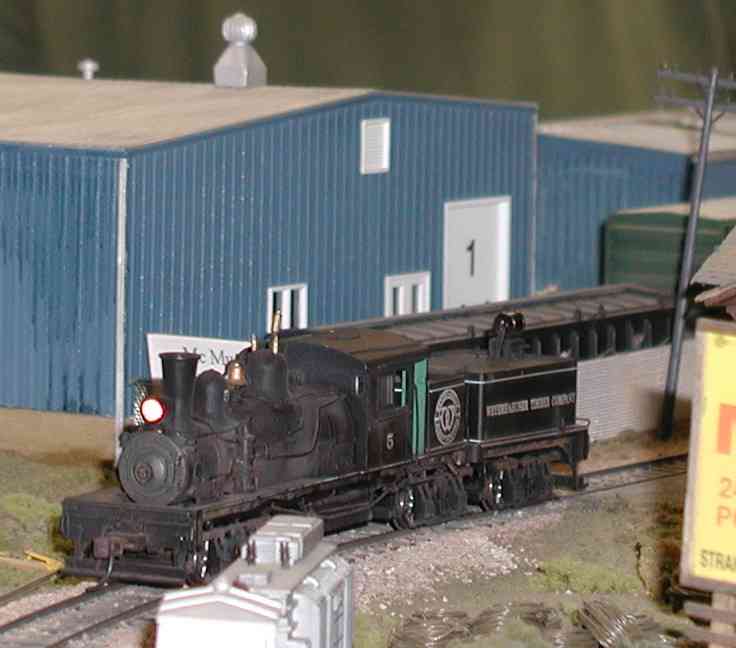 Peter's Shay, with can motor and sound installed by Friedhelm, weathered by Pete: