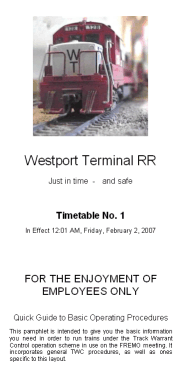 Beginning: Operation starts at 20 o'clock.Westport is the operation center for the industrial districts Third Street, Plywood and Harbor. Trains in the morning bring cars from International Falls and in the afternoon from South Jct. Likewise the cars are brought by transfer trains there. In Westport the classification takes place. The operation of the industrial districts takes place via extras. In the morning an extra runs to Harbor District and set out in Third Street District cars with this destination. On the return trip the cars for South Jct become predominant carried forward, in the afternoon for International Falls. The operation of the Plywood District works via extra in the belt line Westport - Plywood District - Westport (via Harbor Jct.). In Westport still the local industries are served by switcher. Depending upon need a Grain Extra brings cars and/or pick up.